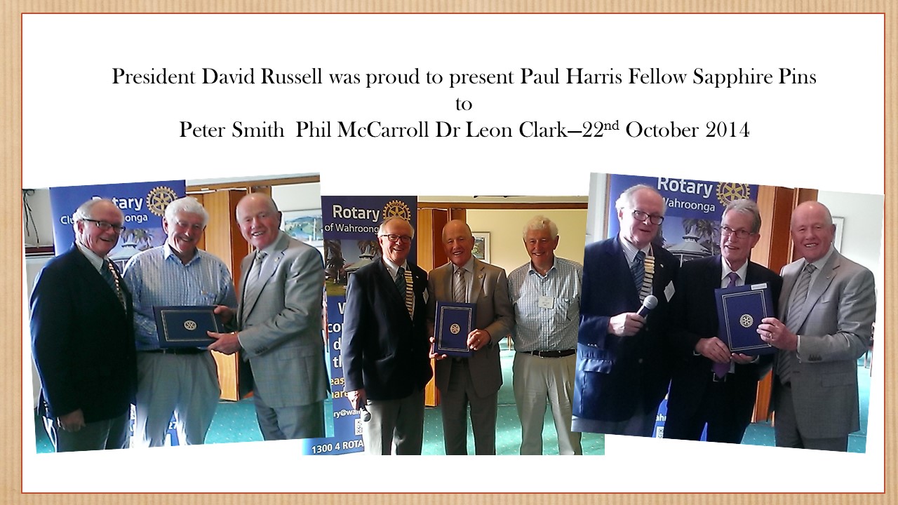 Wahroonga Rotary Vocational AwardsWe are proud to announce the Clubs' 2024 - 2025 Vocational Service Awards Event The Vocational Award Program enables us as a society to recognize individuals within our community who excel in their chosen vocation. They also recognize when an individual has gone above & beyond the normal business activities and has achieved recognition within the wider community. Click below for |
