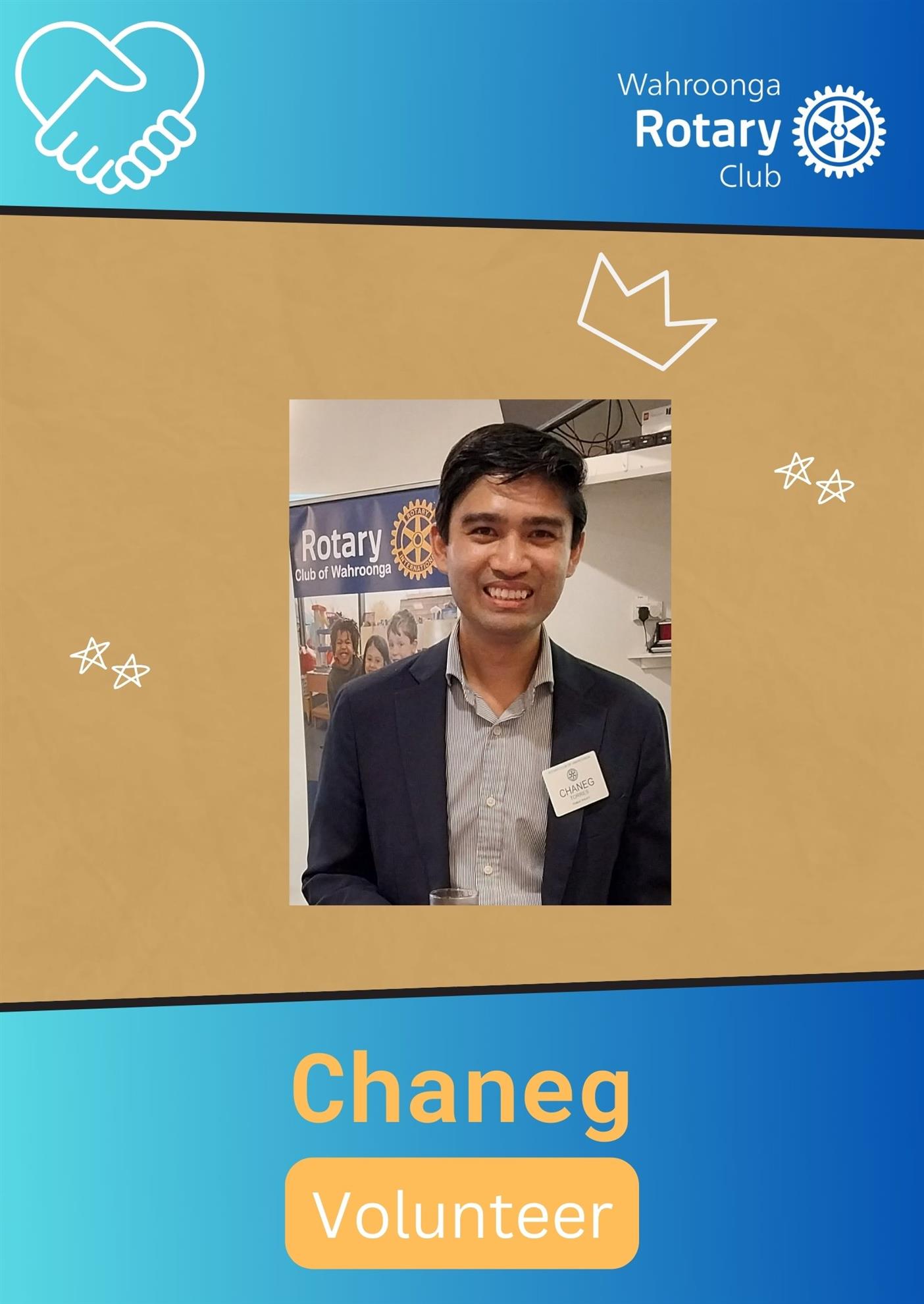 Member HighlightsClub snapshots What are the people/things we take for granted in our Club? What makes the Club tick on a regular basis that we overlook? Here is an opportunity to learn about them. Do you know Chaneg Torres? Chaneg is the person who sends out the weekly club invitations. I hear you say, “I know that”. But what you may not know or perhaps do not remember, is that Chaneg joined the club over three years ago, in October 2020, shortly after the start of Covid. Simon Clegg and I went to his home and inducted him there. Chaneg not only sends out the weekly meeting invitation, but comes to club evening functions and has volunteered for the Fair, ANZAC Day and the Special Olympics Fun Run. Apart from his working life, he has married in the last couple of years. Thank you Chaneg, for your contribution to Rotary, without which the club could not operate as efficiently.
